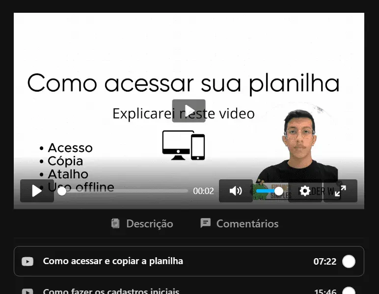 Haverão videos gravados de forma didática por Helder Wander mostrando como acessar, copiar e usar a planilha.